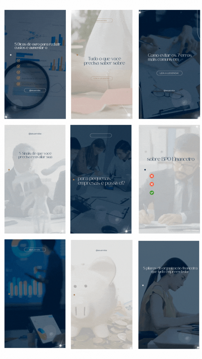 Com o REELS para BPO FINANCEIRO você nunca mais perderá tempo criando artes do absoluto zero. Transformará horas em minutos .