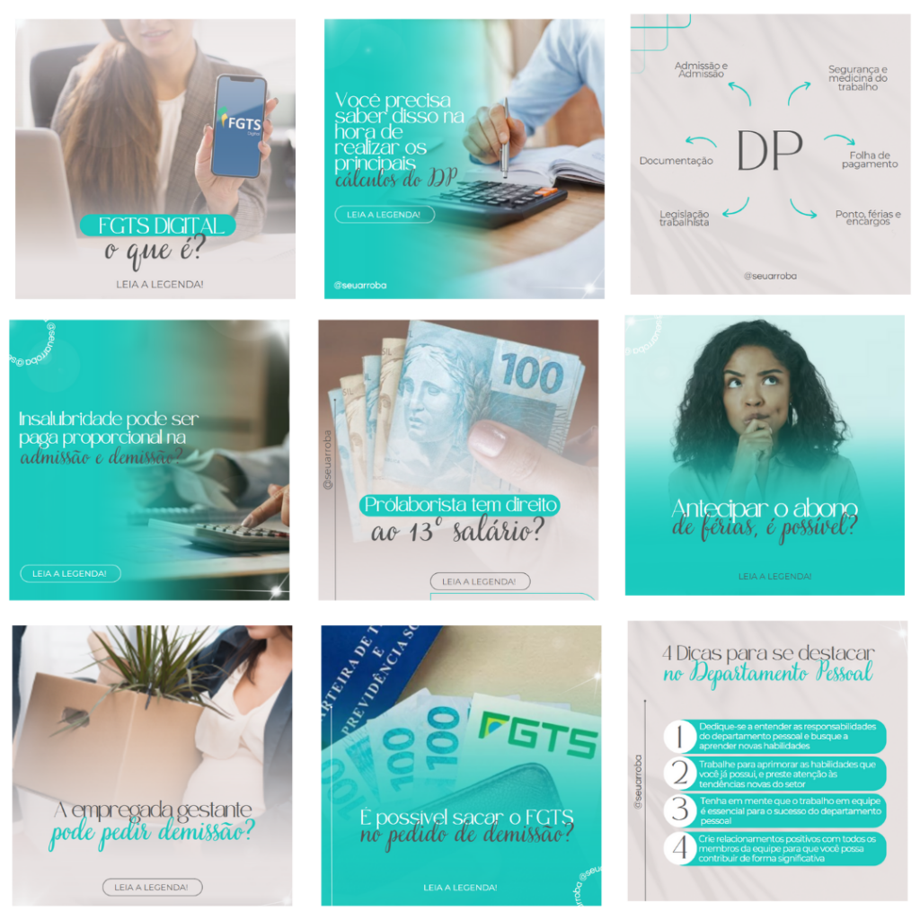 Com o Pack Canva DEPARTAMENTO PESSOAL você nunca mais perderá tempo criando artes do absoluto zero. Transformará horas em minutos .