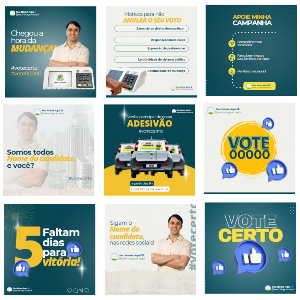 Com o Pack Canva POLÍTICO você nunca mais perderá tempo criando artes do absoluto zero. Transformará horas em minutos .